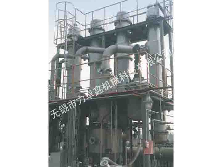 工作原理:四效降膜蒸發(fā)器需濃縮的料液由泵送入加熱管頂部,沿著加熱管內(nèi)壁形成液膜向下流動(dòng)。在這個(gè)過(guò)程中,由于管外的加熱,管內(nèi)液膜開(kāi)始沸騰并部分蒸發(fā)